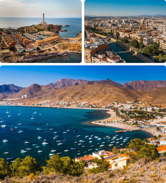 Die Costa Cálida, was "warme Küste" bedeutet, liegt in der Region Murcia im Südosten Spaniens. Mit über 250 km Küstenlinie entlang des Mittelmeers und der Lagune Mar Menor zeichnet sich diese Region durch ihr mildes Klima, goldene Strände, traditionelle Städte und Naturschutzgebiete aus. Es ist ein Reiseziel, das Entspannung am Strand mit kulturellem Erbe und Abenteuern in der Natur verbindet.