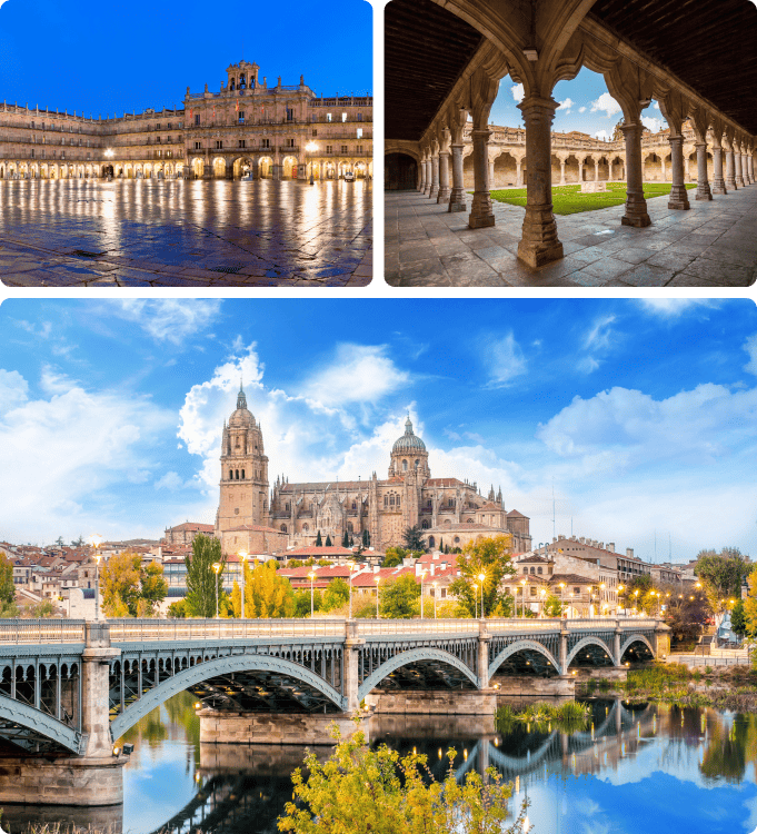 Bathed in the warm glow of its characteristic sandstone, Salamanca is one of Spain’s most elegant historic cities. With a UNESCO-listed old town, a lively university atmosphere and monuments that have stood for centuries, it blends culture, charm and a relaxed pace of life. It is an excellent destination for families, couples and travellers who appreciate architecture, history and inspiring urban landscapes.