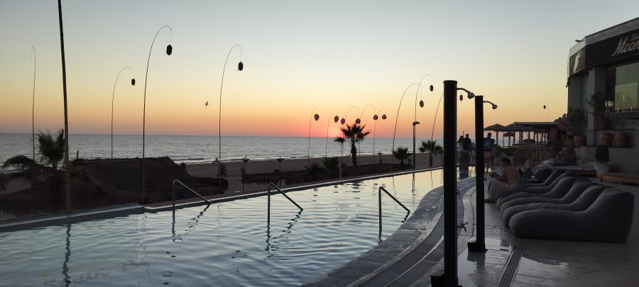 Un hotel precioso con una decoración muy cuidada , ubicación perfecta a pie de playa y vistas preciosas de la puesta de Sol , habitaciones cómodas y funcionales , personal atento y servicial sin un mal gesto. La comida con variedad y calidad .