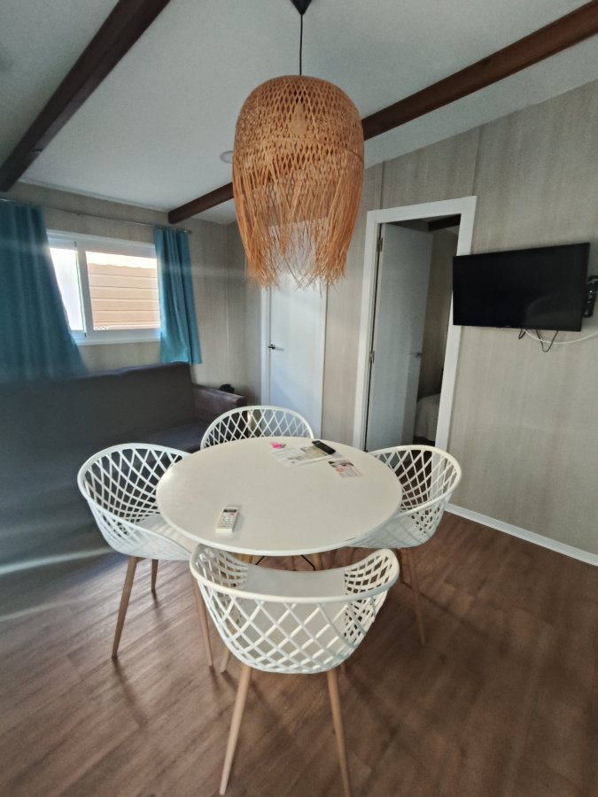 El camping , la casa y las instalaciones muy completas para disfrutar en verano . La casa muy limpia, mobiliario y utensilios nuevos y con todo lo necesario para aprovechar la estancia. La zona donde están las cabañas es muy ajardinada y te invita a relajarte.