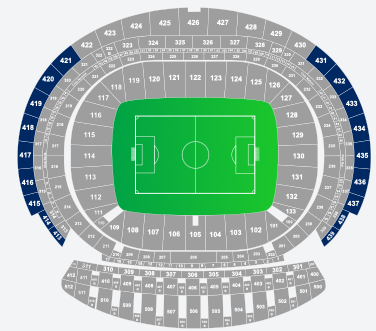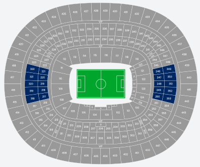 We provide seating maps for each match: , Your seats will be allocated within the area marked in blue