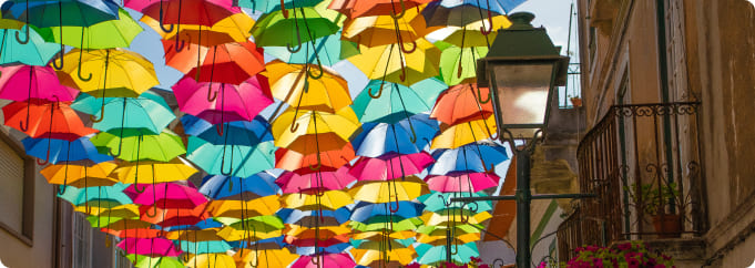 The origin of the Umbrella Sky. Before its umbrellas went around the world, they were an ingenious and local solution to combat the heat of the AgitÁgueda festival. Today, this floating roof is the symbol of a city that knew how to turn necessity into pure visual art.