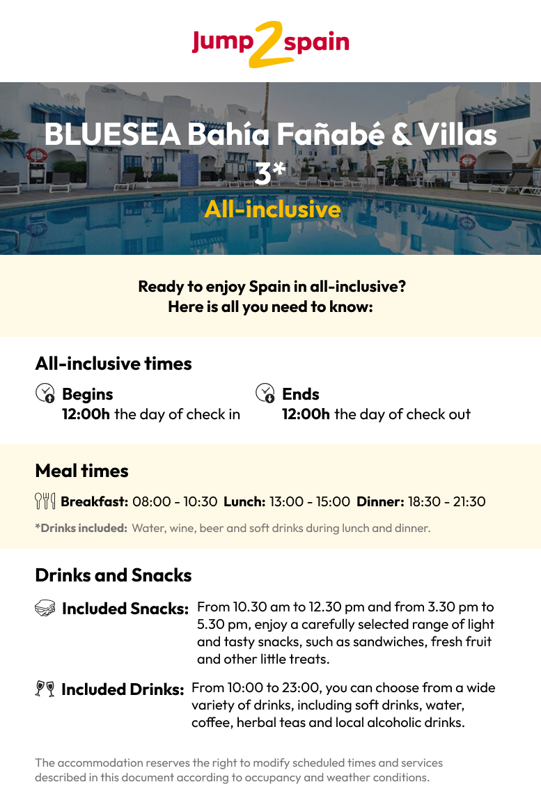 • Accommodation at the BLUESEA Bahía Fañabé & Villas 3*, located in Costa Adeje (Tenerife).