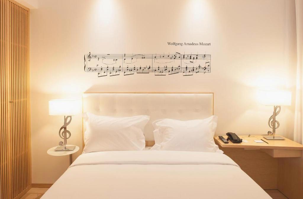 The Da Musica 4 * hotel has a reception, restaurant service, Wi-Fi connection, indoor car park and a decoration totally inspired by music, with instruments, illustrations of musicians and musical paintings on the walls.