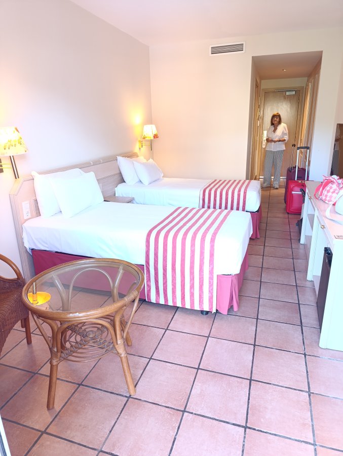 Lo que menos me gusta es la habitación, tiene un toque retro que no me agrada mucho y la cama donde dormí chirriaba solo con respirar. En las terrazas no hay intimidad y la nevera en vez de enfriar o mantener el frío al menos… pues daba calor. Y tema comida estaba rico todo pero es cierto que no tienen nada de cuidado con los carteles de las intolerancias y apenas hay variedad para personas que no podemos tomar lactosa.