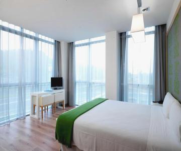 Hotel a unos 10 min en coche de Bilbao. Está al lado de la carretera, por lo que aconsejo habitación hacia el otro lado. La habitación moderna, limpia, tv grande con hdmi/usb, checkout hasta las 12pm y además la oferta incluye parking. En general, muy bien.
