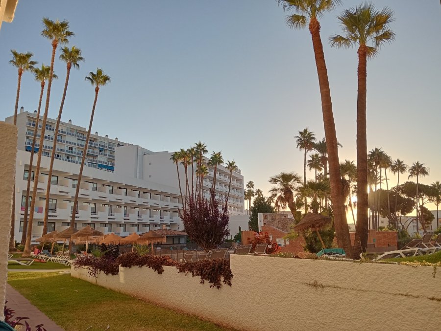 Hotel moderno, reformado con jardines para el descanso. El personal excepcional, se implican en cualquier problema que tengas.La habitación super amplia con vistas al mar, todo un lujo. Parking 24 horas.Todo incluido con pulsera azul.Cerca de la playa de la Cariguela,. Piscina, gimnasio.Se me hizo cortisimo.Quierooo Volveeer