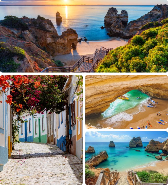 • Lagos : Une ville historique avec des murs de forteresse, des rues charmantes, et certains des paysages côtiers les plus étonnants de l'Algarve.