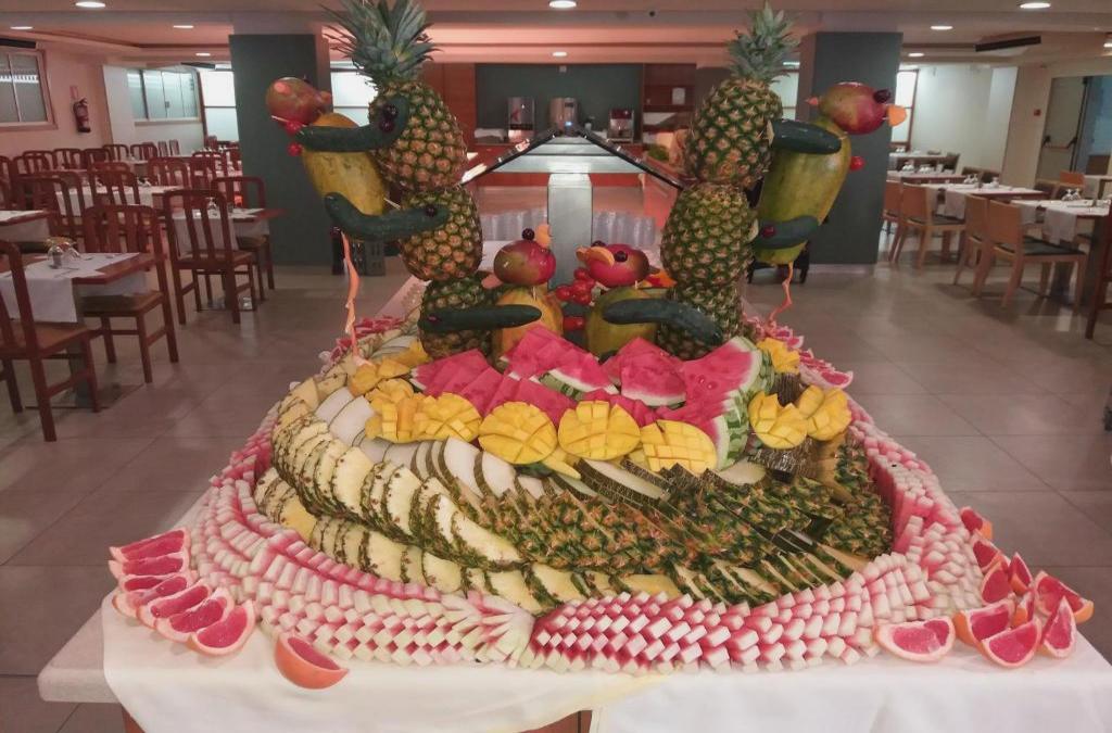 Comida normal tirando a regular. Para ser un cuatro estrellas esperaba mejor calidad. La oferta era habitación con vistas a la piscina y nos dieron vistas interiores a el muro de otro hotel. Mucho niño, demasiado niño. El lavabo no tenía puerta que diera a la habitación. Como la ventana del lavabo no tenía ni persiana ni cortina entraba luz super temprano por la mañana.