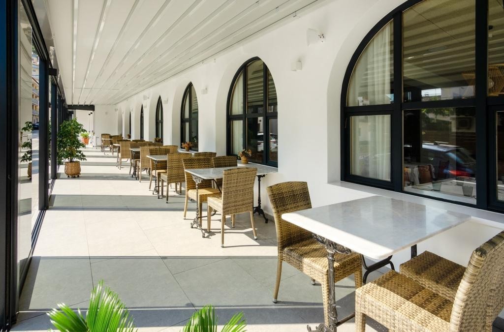 • Suites Júnior: Os quartos mais espaçosos do hotel, com vista para o exterior, uma cama grande, poltronas relaxantes, uma casa de banho completa com duche ou banheira, um cofre, piso em parquet, uma televisão de ecrã plano, acesso Wi-Fi gratuito e uma secretária.