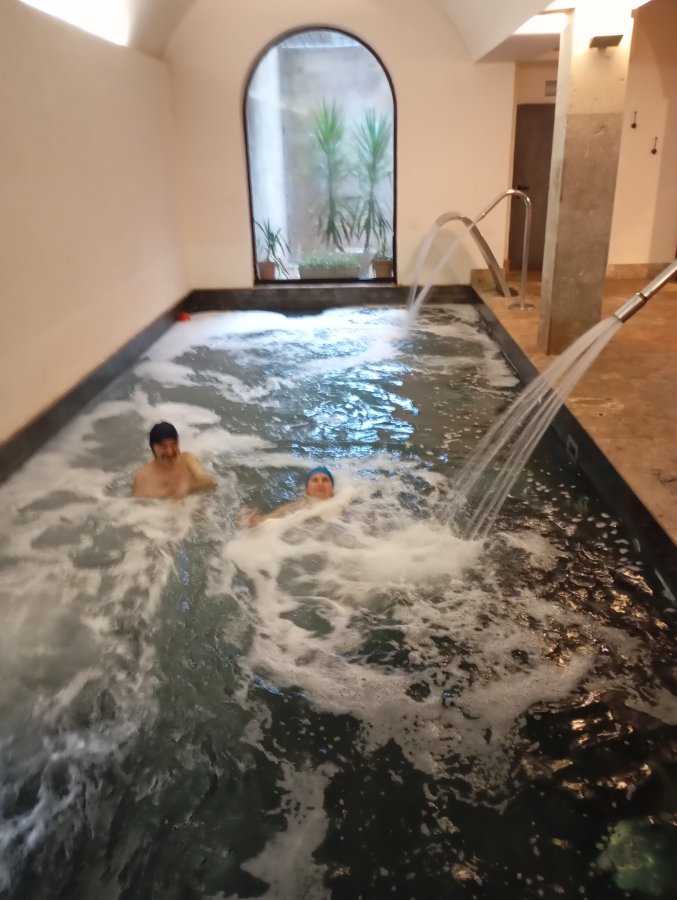 - Entre num spa inspirado nos antigos banhos termais romanos - um espaço tranquilo onde o relaxamento começa no momento em que entra. No interior, encontrará duas piscinas, jactos de água e redes de massagem. (Atenção: a sauna não está incluída no circuito).