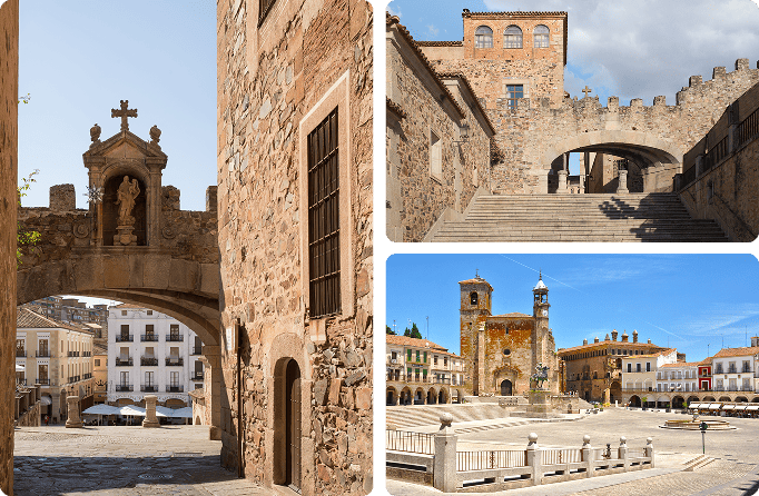 • Centro histórico: Ruas encantadoras e arquitetura tradicional que reflectem a essência da Extremadura.