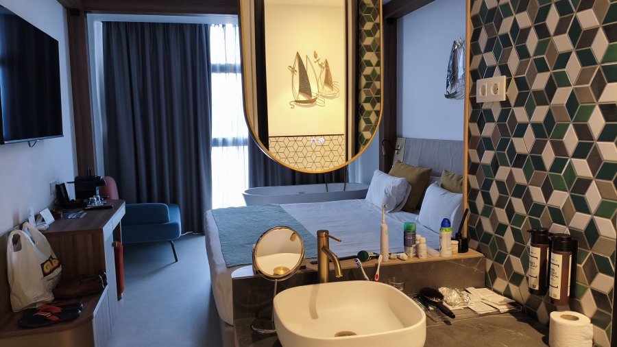 Os seus 104 quartos e suites são acolhedores e modernos, muitos com vista para o mar, e todos equipados com uma casa de banho privativa, televisão de ecrã plano e mini-bar. Desfrute de um farto buffet de pequeno-almoço, relaxe no terraço ou saboreie uma bebida no bar do hotel.