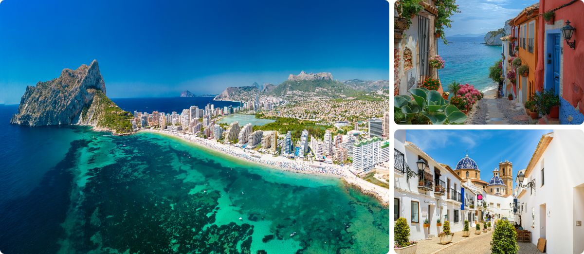 • Altea: Uma encantadora cidade costeira conhecida pelos seus edifícios caiados de branco e pela sua vibração artística. Passeie pelas ruas estreitas da cidade velha, visite as galerias locais e desfrute de uma refeição num restaurante à beira-mar.