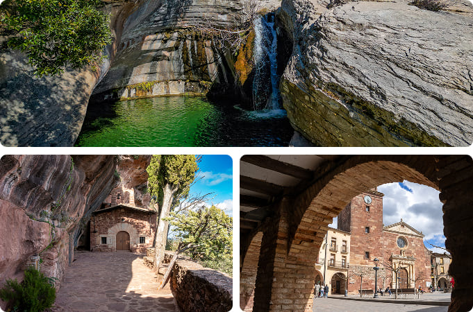 O coração da aldeia é a Plaça Major, ampla e com arcadas, onde pode respirar a essência medieval de Prades. Nas proximidades, encontrará a Igreja de Santa Maria, de estilo gótico-renascentista e construída com a caraterística pedra vermelha. Não pode perder uma visita à Fonte Renascentista, um dos símbolos da cidade, ou um passeio ao longo das muralhas e ruas calcetadas que conservam aquele ar histórico especial. A poucos minutos de distância, o impressionante ambiente natural da Serra de Prades oferece pontos de vista e paisagens que o deixarão sem palavras.